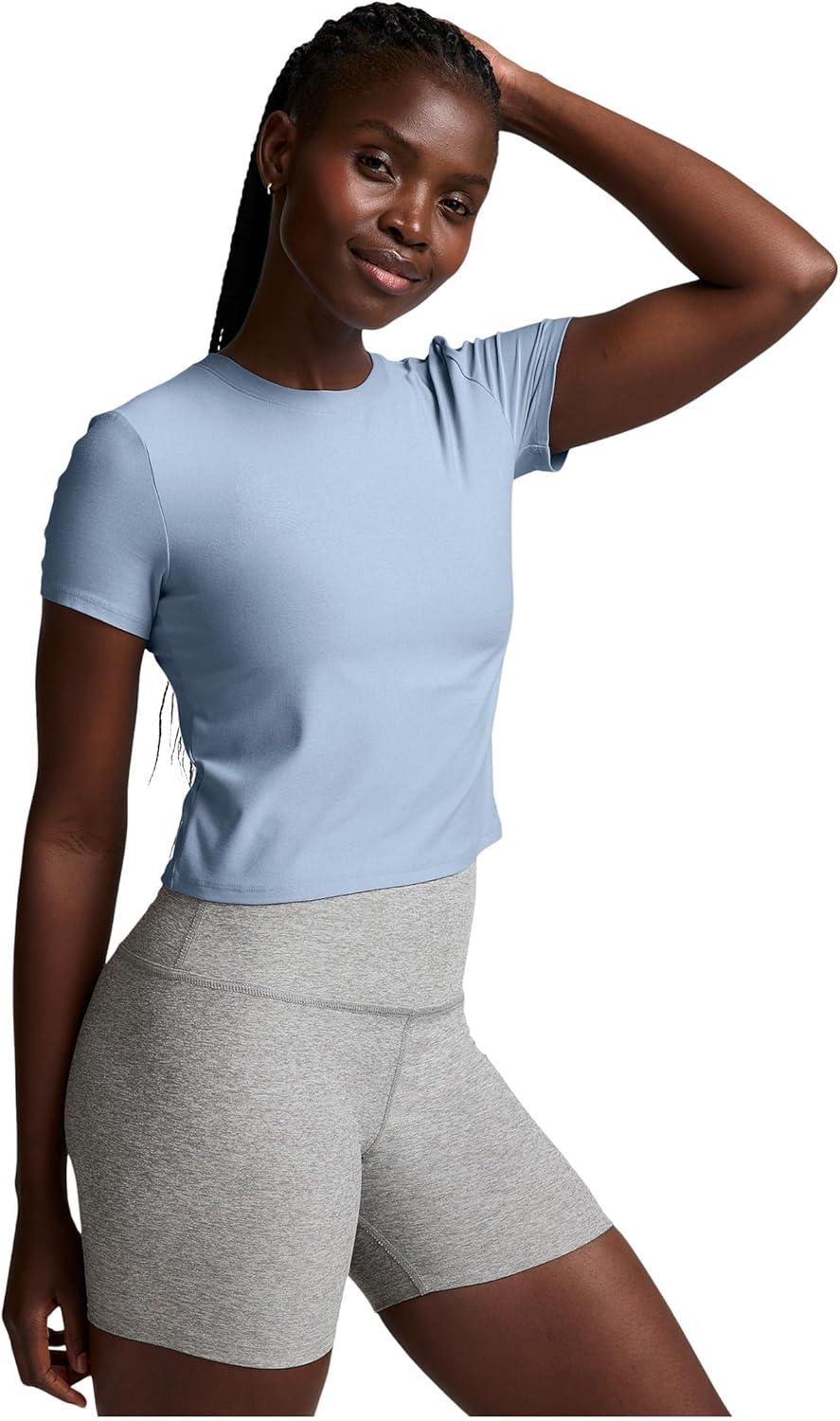 Beyond Yoga Women’s Featherweight Cropped Tee(Blue Zen Heather)